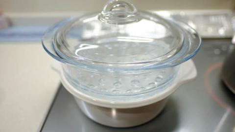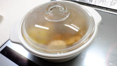 ・調理中 スチーマー付き両手鍋は中身が見えるのが便利。スチーマー付き両手鍋は上下2段使える・・・下で湯気が発生するものであれば何でも上で蒸せるので便利。蒸籠蒸しは竹籠のエキスが落ちるのでお湯は色と臭いが着いてしまい、そのまま使用ができません。(最近は落ち着いてきましたが、うっすらと臭いと色が鍋の湯に移るので蒸すことだけしかできないのが不便。