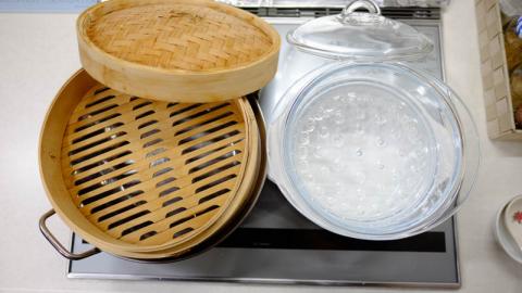 ・湯気 蒸籠蒸しの方が通りやすい。スチーマー付き両手鍋は横から蒸気の漏れる量が少ないので多少時間はかかりますが、問題はありません。