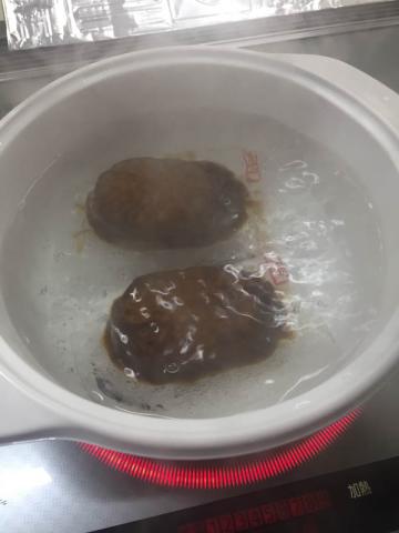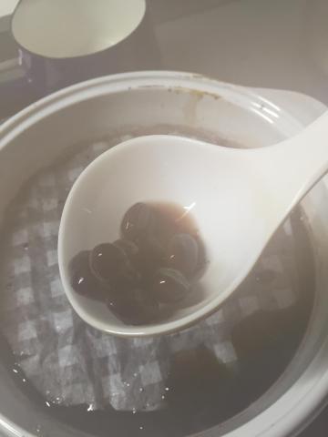 材料は、黒豆、重曹、水、砂糖・・・一晩、重曹、水、砂糖の液体に沈めておいて、