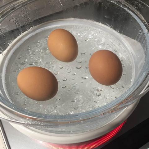ただ、これの良いところは殻が割れない。割れたところからお湯が入り込んだりしない。不思議とつるっと剥ける・・・と、扱いやすくなります。
