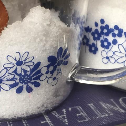 そして、粗塩をもも肉1枚に対して小さじ2杯を揉み込みます。ちなみに塩は博多の塩を使用。