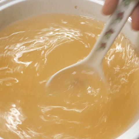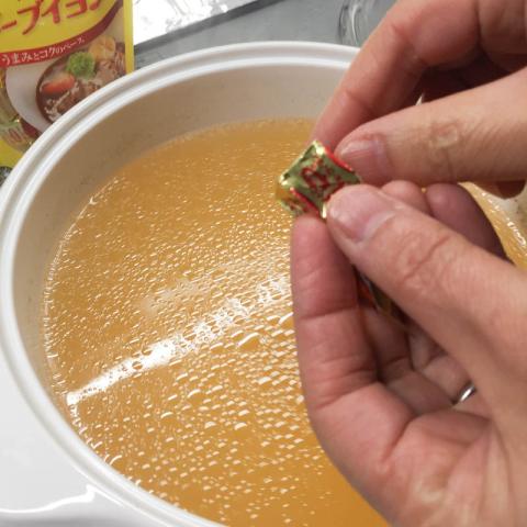良くかき混ぜて・・・黄金色がさらに濃くなり、おいしそうな色になりました。