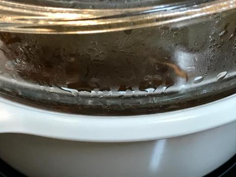 ふたをして水蒸気がふたにたくさん付着し始めるまで
