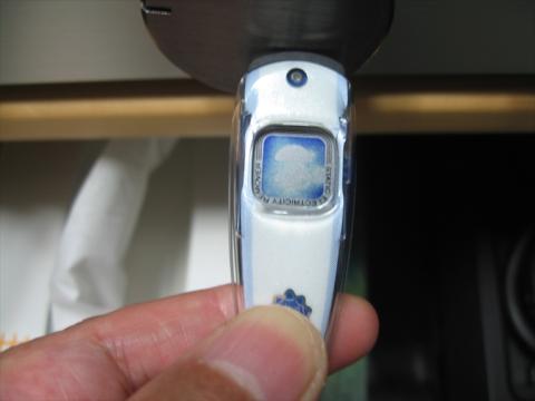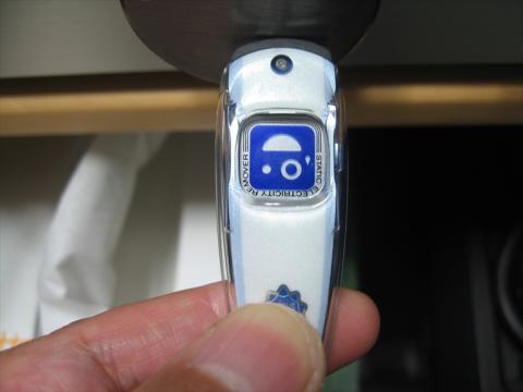 リングを握って(触りながら)先端の導電ゴムを金属に接触させると放電が始まり、笑顔?が表示されます 放電が終了すると顔マークが消えます 帯電量により終了する時間は変ります 内蔵電池不要