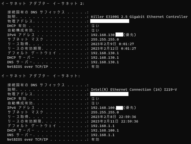 今回、新たに2.5Gbps用にVLAN設定してサブネット(192.168.130.0/24)を作成した。