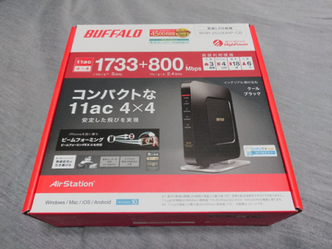 最初に購入したのは「BUFFALO 11ac/n/a/b/g 無線LAN親機(Wi-Fiルーター) Giga ビームフォーミング対応 866+300Mbps WSR-1166DHP3-WH」