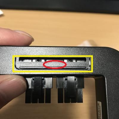 訂正:カバーになっているラバー材を取ると細長い爪があるけどそれが押せるようになっており、押すとVGAにロックされている爪がテコの原理でメカ的に外れる仕組みでした。(ホーリーテールさん教えてくれてありがとうございます)