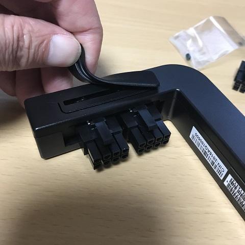 L型になっておりビデオカード側面より電源ケーブルを指す格好となります。