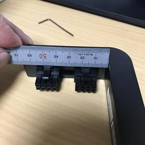 参考程度に寸法は一番内側に寄せると内側8.0mmまで寄せられ、一番外側は55.0mmまで広げることが出来ました。この寸法内に収まれば他のビデオカードでも取り付け可能です。