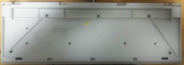 どこにでもありそうなKBです。写真よりもベージュ色です。こんな””グレー””って感じの色をしていません。 500円のジャンクKBなのでホコリの蓄積や「飲み物こぼしたな~」って痕が散見されました。なお、「キーが反応しませんでした(=燃えないゴミ)」ので使えそうな部品だけ取り外して後日廃棄処分決定です。