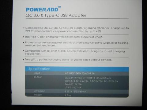 2.出力:QualcommⓇQuick Charge(TM)3.0×1+USB×3+Type-C×1 8A/40W Max