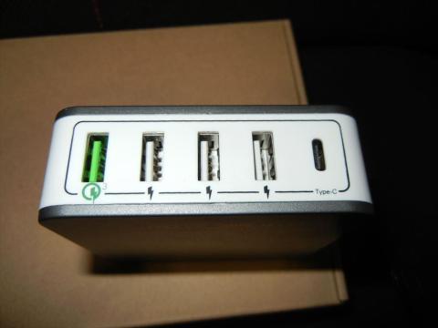 この充電器はUSB端子が4個、C端子が1個あります。