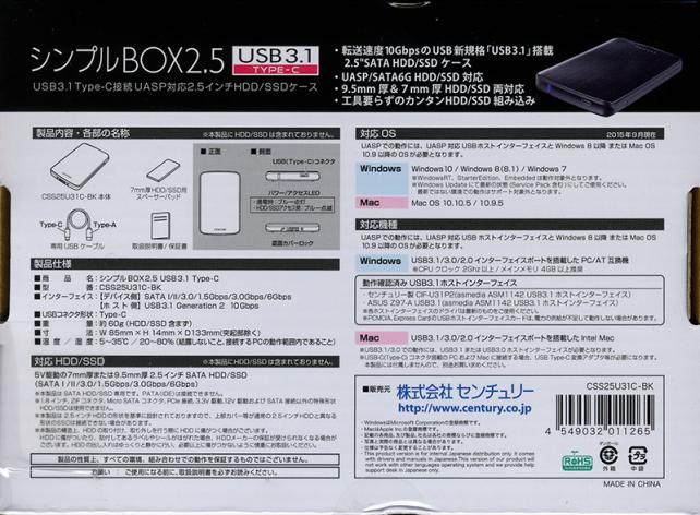 本体は、USB 3.1 Type-C搭載のものを購入しました。