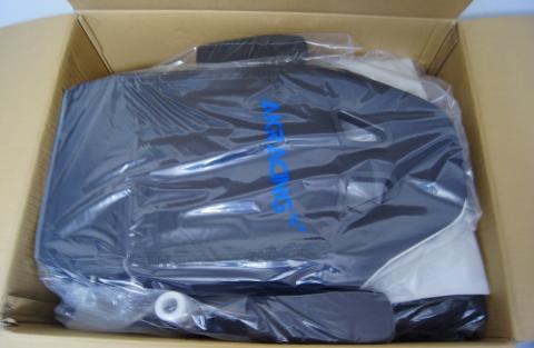 巨大な箱を開けると、まずは背もたれが姿を現します。