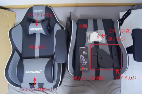 組み立ては既存のAKRacing各製品と大体同じですが、GYOKUZA / 極坐は座椅子なので、ガスシリンダーと5本足ベースはありません。