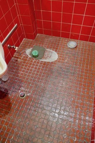 1980年の開店当時は、INAXの赤い145ミリタイルを壁一面に張り込んだ広い化粧室が自慢でした。