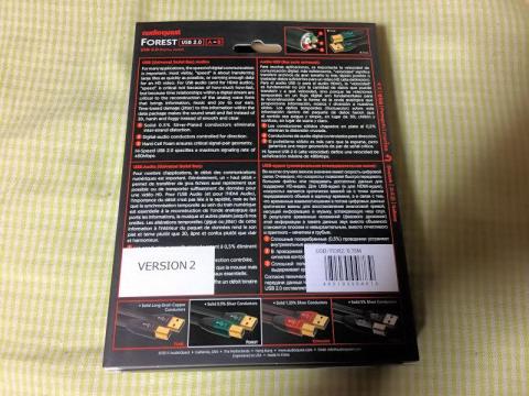 ところが、先日オーディオ店で雑談をしていたときに、店員の方に「JITTERBUGとそこそこのUSBケーブルと、どちらが音質的に意味があるのか」と質問してみると、「どちらもそれなりに大きな改善効果がある」という回答だったのです。聴けばすぐに判るレベルということであり、コストパフォーマンス的にお薦めなのはUSBケーブルをこのFORESTにして、JITTERBUGと組み合わせることという意見でしたので、差し当たってその販売店でUSBケーブルだけ買ってみました。実はJITTERBUGは某所のタイムセールでその販売店よりも大幅に安く売られていることを知っていましたので…。