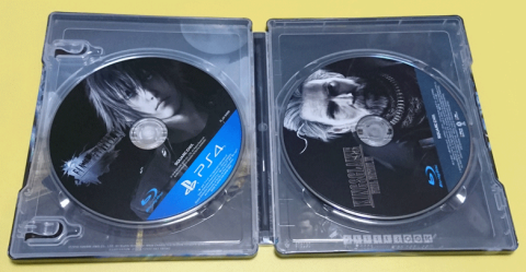 ゲームディスク「FINAL FANTASY XV」と、長編映像作品「KINGSGLAIVE FINAL FANTASY XV」ディスクの2枚組。