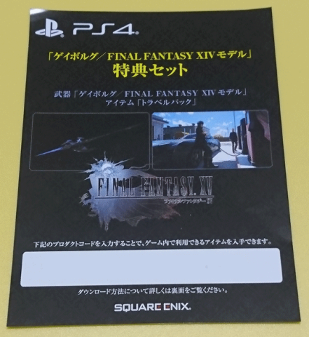 初回生産特典 武器「正宗/FINAL FANTASY XVオリジナルモデル」アイテムコード