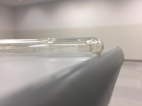 画面には傷防止のために9Hの保護ガラスを貼っています。保護ガラスの厚さは0.33mmとありますがフィルムに比べると厚みがあるのは事実です。画面を下向きに机に置くと、ガラスが机に当たります。このままこすればガラスが傷つくことになります。画面が傷つかないように貼っているのですが、そうはいっても保護ガラスもきれいでいてほしいものです。