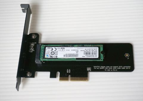 また使っているSSDはそこまで発熱しないAHCIタイプだが熱の面でも変換基盤の方が有利。