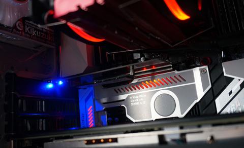 M.2スロット周囲にカバーがついていてそこがイルミする。このマザーのデザイン上最大の特徴なのだが…M.2SSDを装着するとLEDが隠れてイルミしなくなるという何も考えてない仕様だったので、わざわざASUSマザー付属のM.2変換基盤を使っていた。