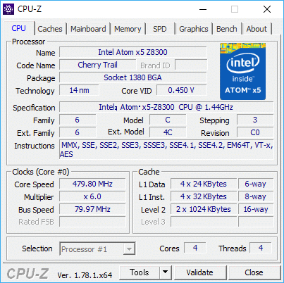 - CPU:IntelATOM x5-Z8300(1.44~1.84GHz×4)