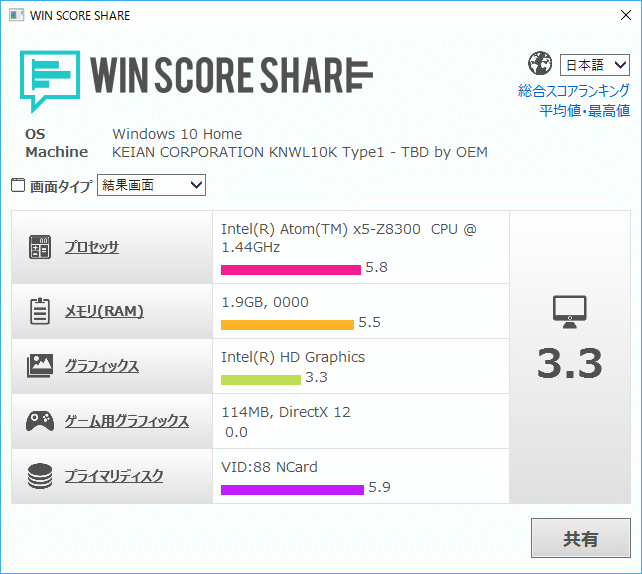 ※DXDIAGで見ると DirectX 12はインストールされているようなのですが、 Scoreが0ですね