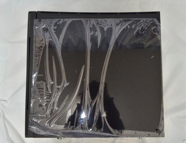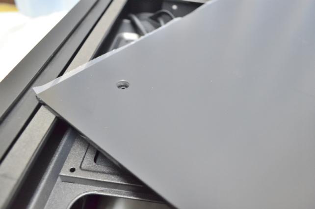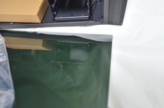 サイドパネル裏。スチールかプラスチック?とガラスの貼り合わせになっています。