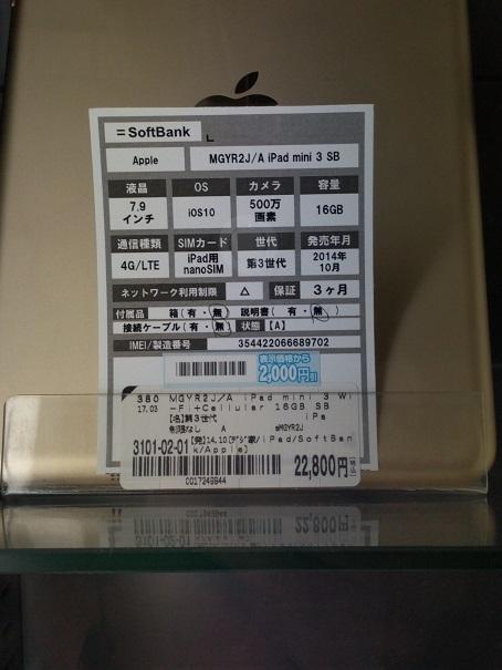ストレージ:16GB内蔵/iOS 9.3.5