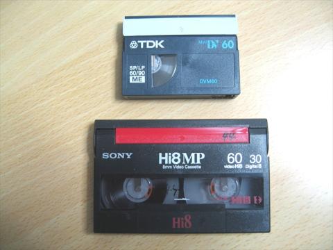 上がDVテープ 、 下8ミリビデオテープ 1/2位の大きさになってます