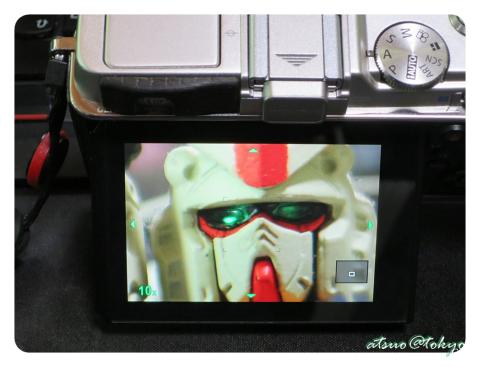 この枠をカーソルキーでピントを合わせたい位置に合わせ、再度ボタンを押すとその部分が拡大されます。