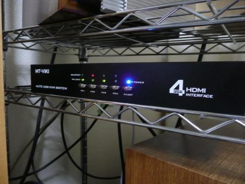 ラックを挟んでテーブルの反対側にWidows機を置いています。KVMスイッチ付属のケーブルが1.5mまでのものなので届きません。そこでアマゾンでHDMIケーブルを購入。