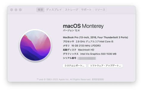 Skylake世代と考えればかなり高速なSSDが載っているようです。実際にMac OS MontereyやWindows 10を動かしてみても、十分快適な水準と評して良いと思います。さすがに3Dゲーム等を実用的というのは無理だと思いますが。