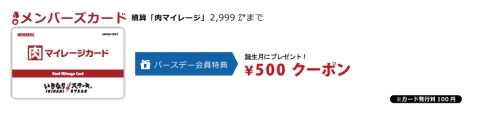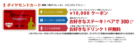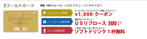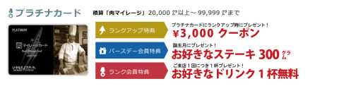 後は、特典として誕生月のリブステーキ300g、来店ごとのソフトドリンクサービスが受けられる。