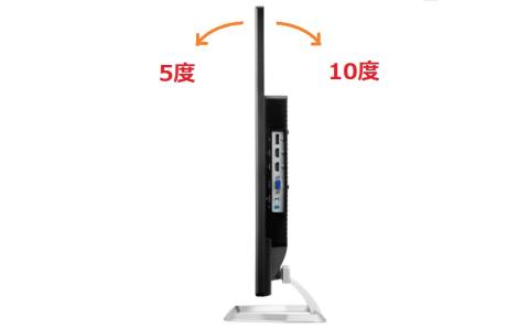 確認したところ、チルト機能は上方向は「最大10度」、下方向にも「最大およそ5度のチルト」に対応していたので助かりました。