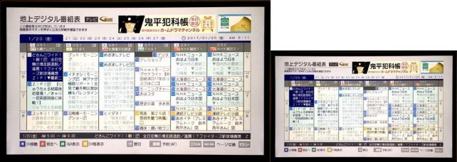 (実際のテレビ番組表を使った31.5インチ:21.8インチ画面サイズ比較)