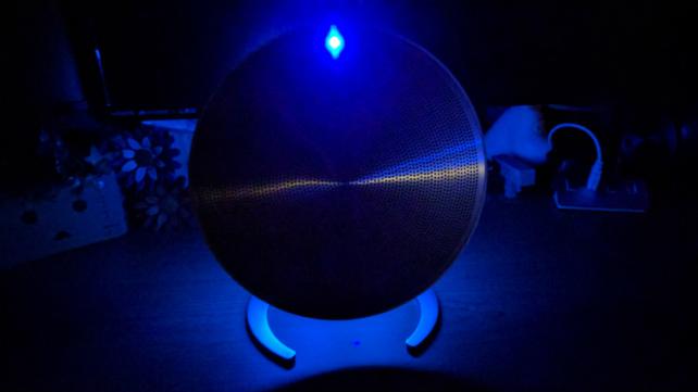 上部にブルーLED。状態がわかるのはいいのですが、接続中は点滅したまま。