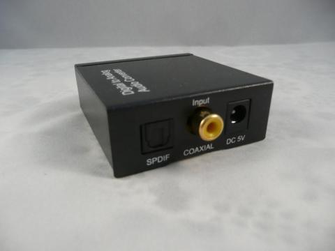 この商品には5VACアダプターがついているのがデフォルトなのですが、PSEを取得していないということで、今回は付属させないことに。その代わり、USBから5Vを引っ張りだすケーブルと、光デジタルケーブルをつけてもらいました。