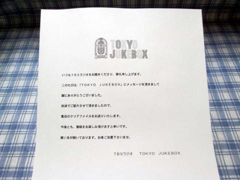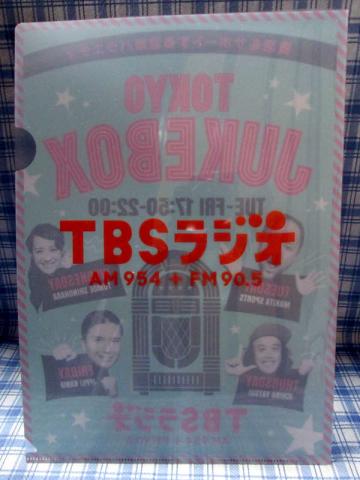 TBSラジオの「TOKYO JUKEBOX」で頂ける番組特製クリアファイルです。