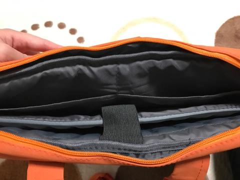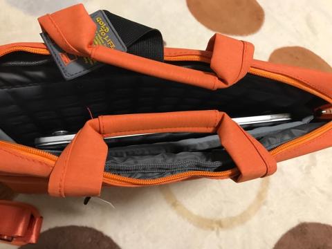 内部にはノートパソコンなどを保護する目的のクッションが仕切りとして