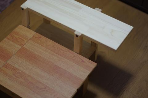 同じようなサイズのヒバ材製の組み立てキットがありましたが、一番上の棚板が天板になるのではなくて、数cm程棚受けが飛び出している形になってしまっていたので、こちらの商品を選択。