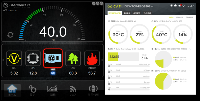 CAMと比べてみました。CPU、グラフィックとも温度表示が同じでした。