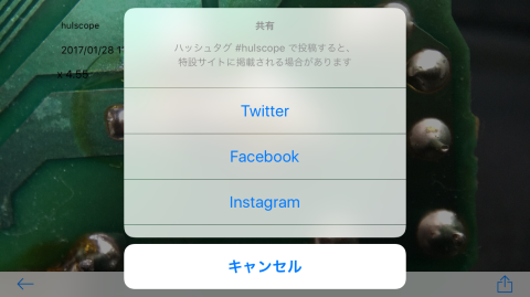 また、アプリの機能として撮影した画像をSNSに投稿できる機能もあります。