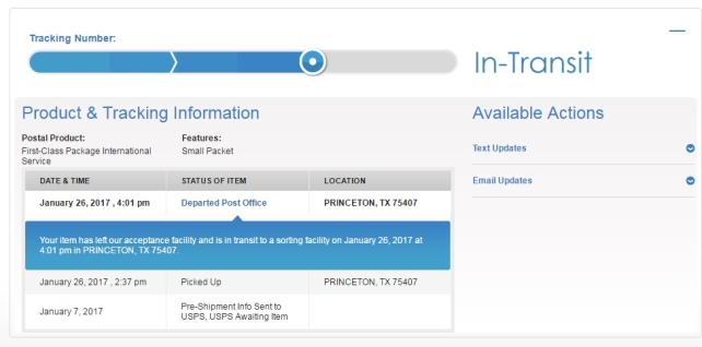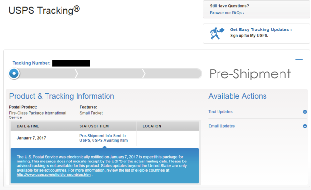 この後、慌てたのか向こうがUSPSに物を渡したのが2017年1月26日(アメリカ時間)と本来と約3週間もズレるという商売をやる上で信頼を損ねる行為を普通にやってくれたのは非常に・・・ね。
