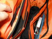 実際、自転車通勤時の試して見ました。写真の通り、防水機能はちゃんと機能しています。上部が蓋になっているのですが、開けると水滴が一切ありません。