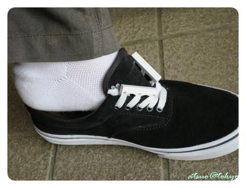 Kickstarterのページでは、どんなひも靴にでも使えるとの事で革靴やブーツにも着けてみせていましたが、やっぱり見た目はイマイチです。