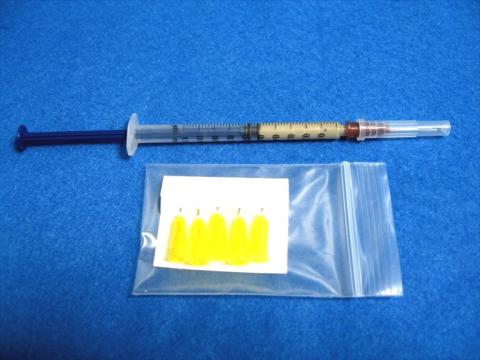 注射器、交換針が同封されていますので取り扱い、廃棄には充分にご注意ください!