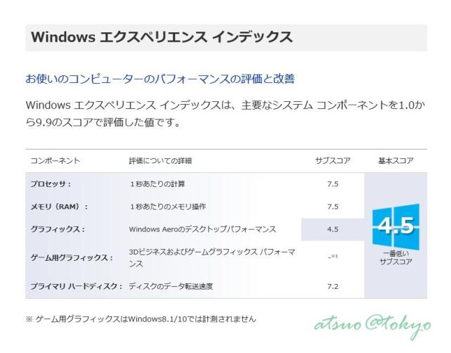 とりあえず Windows エクスペリエンスを測ってみました(WEBmarksにて表示)。