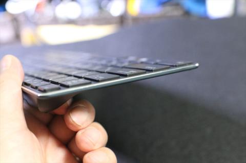 厚さは4.3mmと非常に薄いです。傾斜と電池を入れるためにでっぱりがありますが、非常にスリムです。スリムな割にはステンレスのため剛性が高く、ペコペコしないです。